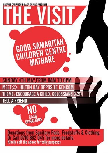 “Dreams Campaign & Kaka Empire Presents 'THE VISIT' This 4th Sunday at Good Samaritan Children's home in Mathare.