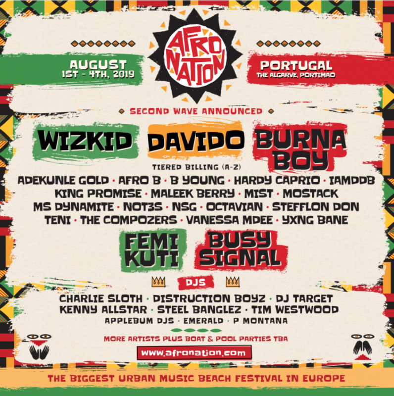 Afro-Nation festival is a music festival where the organisers are hosting African artists to bring their good vibes to Portugal. The DJ lineup also is made of African DJs such DJ Spinall. The headiners of the show are Burna Boy, Wizkid, Davido and Buju Banton. The festival describes the three Nigerians as the Nigerian trio Nigerian stars. The other featured artists are really all the Nigerian stars; Yemi, Tiwa, FALZ and many more apart from Stefflon Don and Vanessa Mdee. There will be guest performances from Busy Signal, Femi Kuti, D’Banj and a surprise guest.