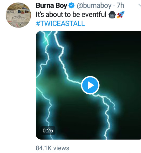 While sharing the video, Burna Boy said "It’s about to be eventful #TWICEASTALL".