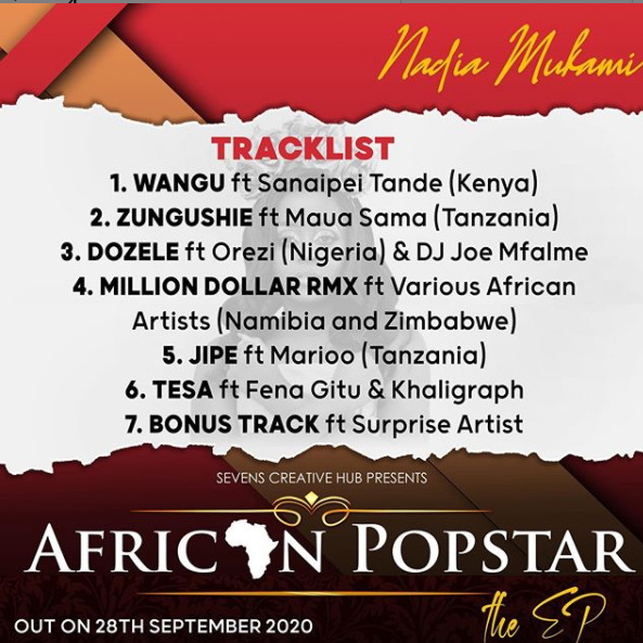 “IT’S OFFICIAL!! Now that I have your attention Sevens Creative Hub presents Nadia Mukami’s long awaited all collaboration EP, ‘AFRICAN POPSTAR THE EP’ that drops on the 28th of September 2020,” she posted on Instagram.