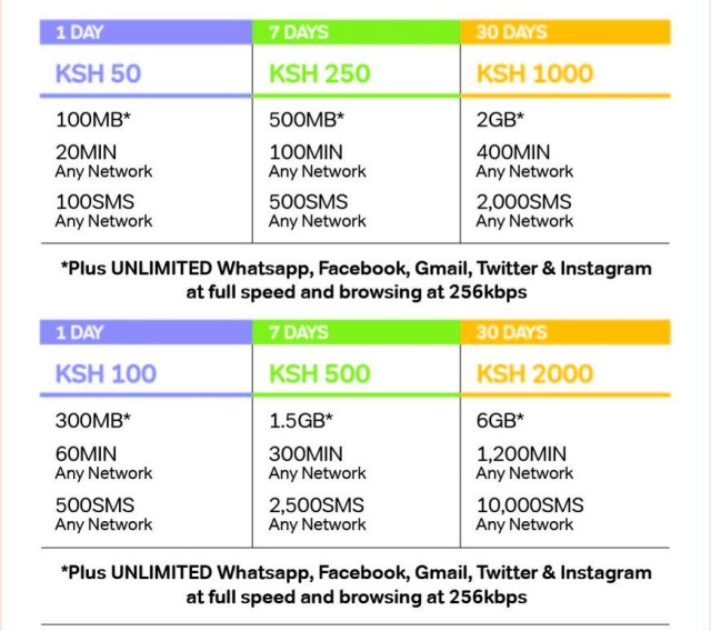 Imagine, for between Ksh 50 and 1000, subscribers are enjoying talk time, SMS and data bundles that let you keep browsing even after your bundles run out! And it's permanent.