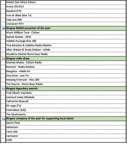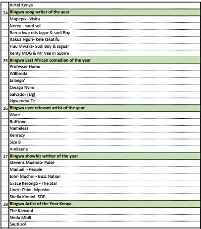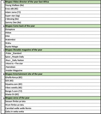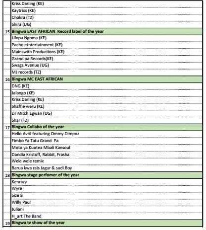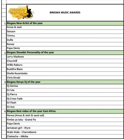 The 2nd Bingwa Music Awards was launched in Nairobi on 1st September, 2015. This event was birthed as a platform to set the pace in the music & entertainment industry, acknowledging and appreciating deserving talents in the region. The award seeks to recognize all genres of musical talents in Eastern Africa, covering acts from Kenya, Tanzania, Uganda, South Sudan & Rwanda.