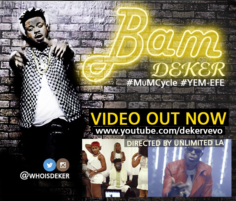 Deker follows up with an Unlimited LA visually curated piece for BAM! BAM which means Bounce and Move was released a month ago and has been enjoying impressive radio airplay and garnering street followership. The visuals potrays the artiste in an enjoyable gentleman party situation.