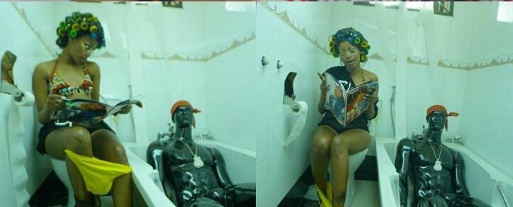 Well, here's a Ugandan video that was met with the above mentioned mixed reaction after the singer, Sheebah, presented a preview of it. She takes an utterly bold creative step and uses manikins and displaying a shade of nudity of her in the toilet with her knickers swinging between her legs.