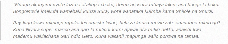 “Nimesikia kuwa Bongo Movie wana mpango wa kunipeleka mahakamani, nimeongea na wakili wangu kaniambia tutshinda kesi. Halafu Kajala namuheshimu kama mama yangu, nimesikia alichosema nasubiria wanipeleke mahakamani” alisema Nay.